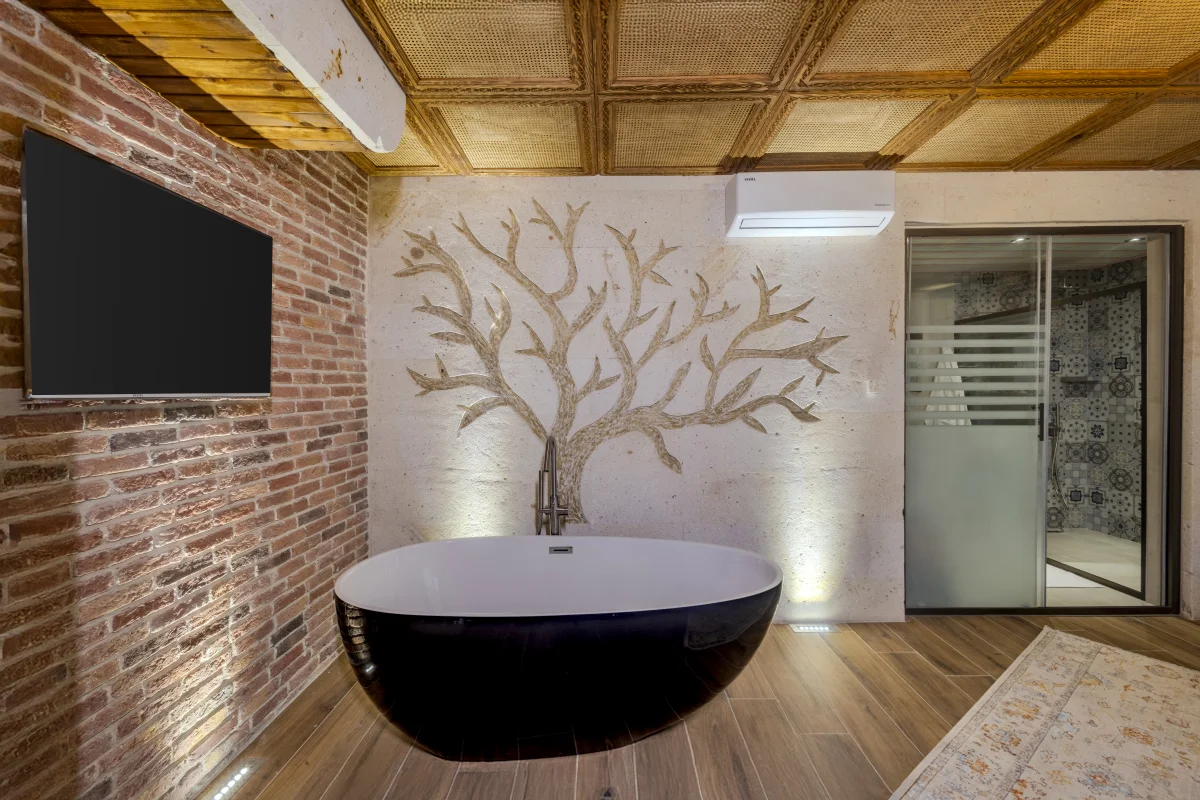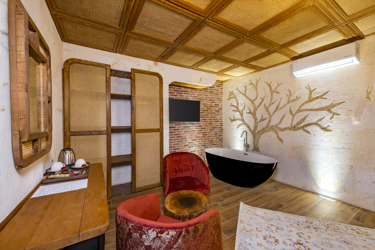 Modern konfor ve otantik mağara mimarisi bir arada. Tüm ihtiyaçlarınız için eksiksiz donanım.
