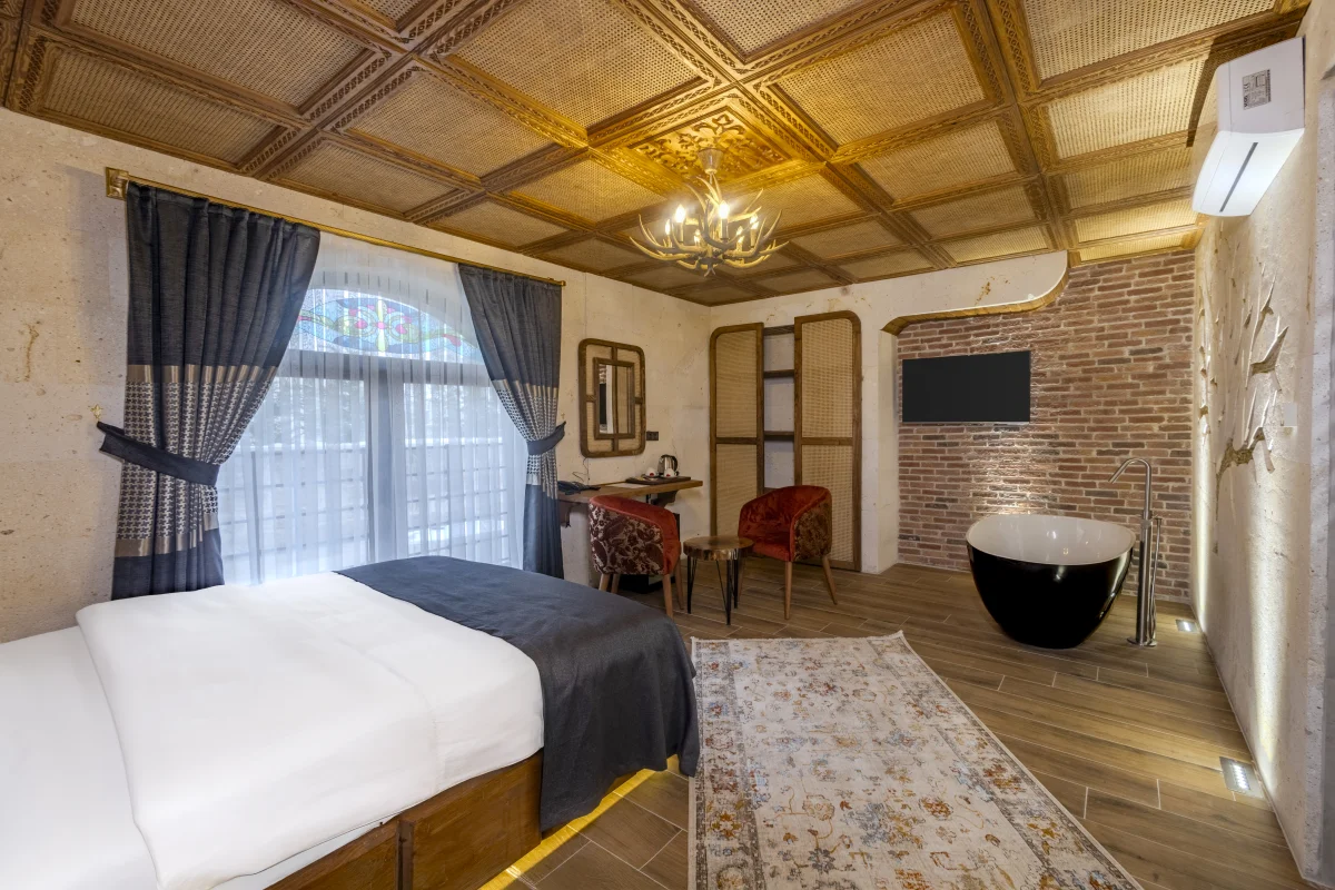 Modern konfor ve otantik mağara mimarisi bir arada. Tüm ihtiyaçlarınız için eksiksiz donanım.