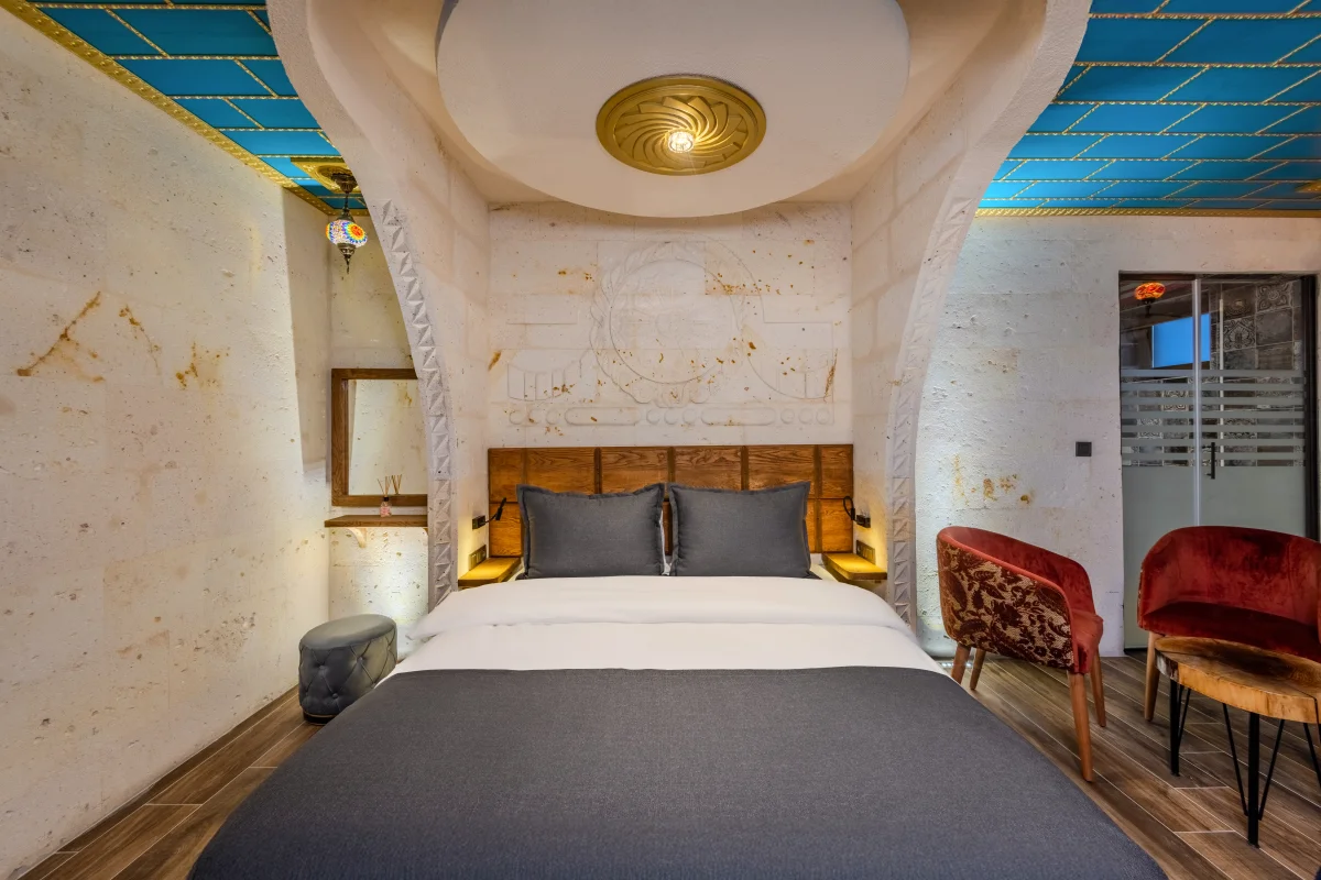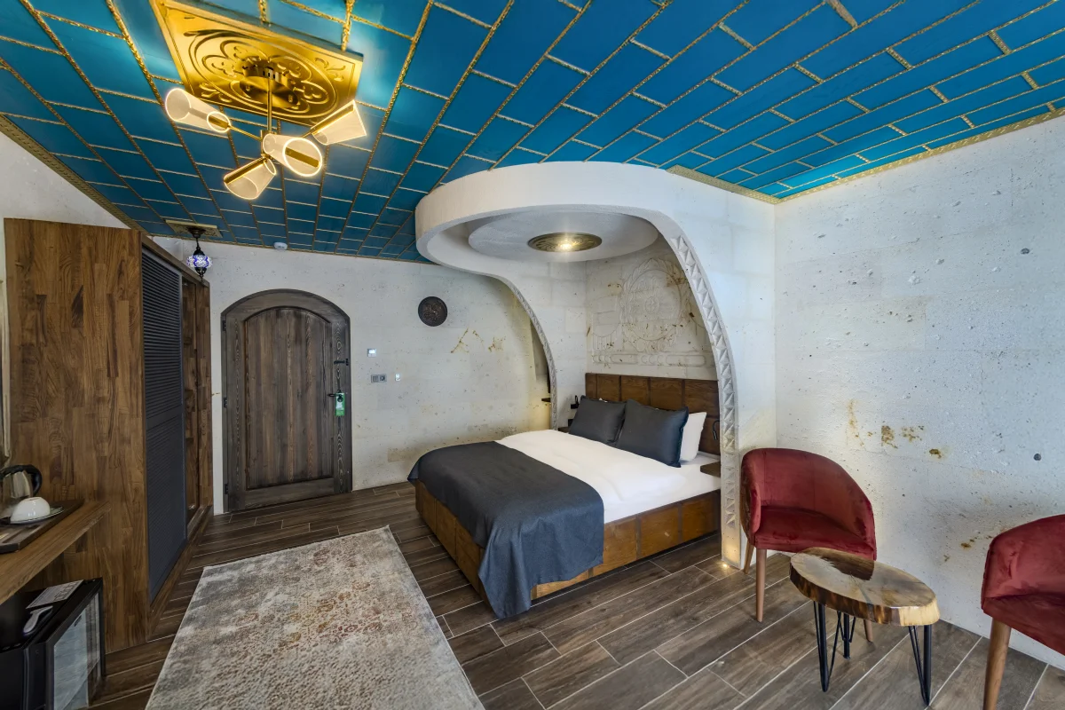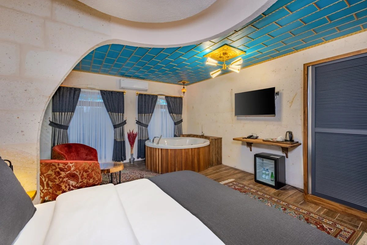 Özel spa küveti ve şömine ile romantik atmosfer. Rahatlama ve konfor bir arada.